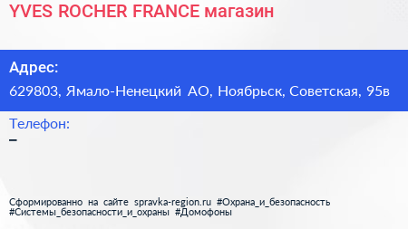 YVES ROCHER FRANCE, магазин по адресу 629803, Ямало-Ненецкий АО, Ноябрьск, Советская, 95в в дальнейшем Организация, размещена в следующих категориях: