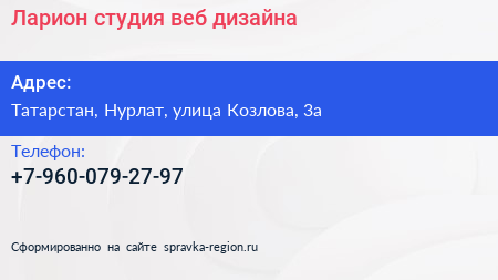 Ларион, студия веб-дизайна по адресу Татарстан, Нурлат, улица Козлова, 3а в дальнейшем Организация, размещена в следующих категориях: