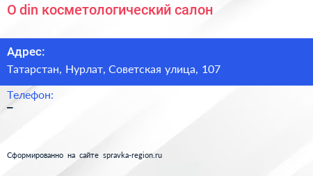 O`din, косметологический салон по адресу Татарстан, Нурлат, Советская улица, 107 в дальнейшем Организация, размещена в следующих категориях: