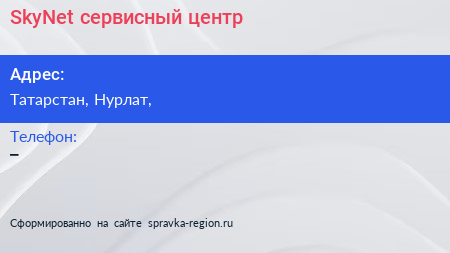 SkyNet, сервисный центр по адресу Татарстан, Нурлат, в дальнейшем Организация, размещена в следующих категориях: