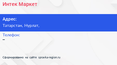 Интек Маркет по адресу Татарстан, Нурлат, в дальнейшем Организация, размещена в следующих категориях: