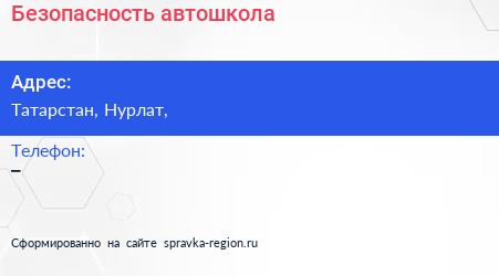 Безопасность, автошкола по адресу Татарстан, Нурлат, в дальнейшем Организация, размещена в следующих категориях: