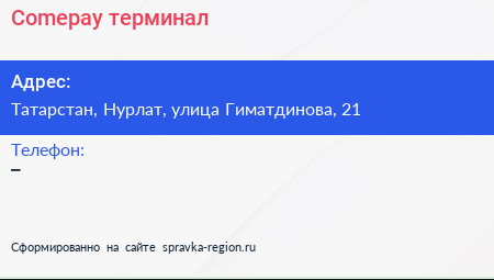 Comepay, терминал по адресу Татарстан, Нурлат, улица Гиматдинова, 21 в дальнейшем Организация, размещена в следующих категориях: