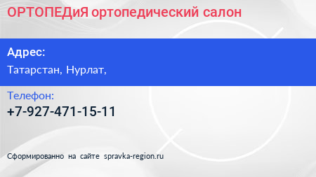 ОРТОПЕДиЯ, ортопедический салон по адресу Татарстан, Нурлат, в дальнейшем Организация, размещена в следующих категориях: