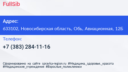 FullSib по адресу 633102, Новосибирская область, Обь, Авиационная, 12Б в дальнейшем Организация, размещена в следующих категориях: