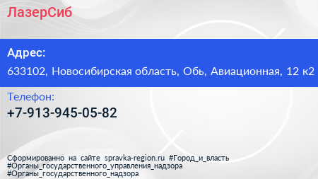ЛазерСиб по адресу 633102, Новосибирская область, Обь, Авиационная, 12 к2 в дальнейшем Организация, размещена в следующих категориях:
