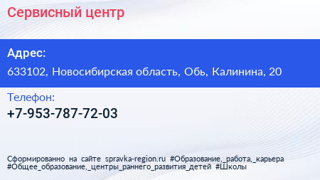 Сервисный центр по адресу 633102, Новосибирская область, Обь, Калинина, 20 в дальнейшем Организация, размещена в следующих категориях: