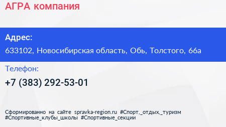 АГРА, компания по адресу 633102, Новосибирская область, Обь, Толстого, 66а в дальнейшем Организация, размещена в следующих категориях: