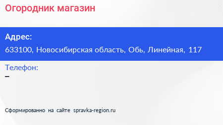 Огородник, магазин по адресу 633100, Новосибирская область, Обь, Линейная, 117 в дальнейшем Организация, размещена в следующих категориях: