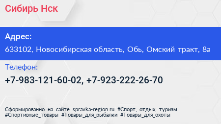Сибирь Нск по адресу 633102, Новосибирская область, Обь, Омский тракт, 8а в дальнейшем Организация, размещена в следующих категориях: