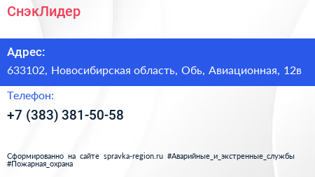 СнэкЛидер по адресу 633102, Новосибирская область, Обь, Авиационная, 12в в дальнейшем Организация, размещена в следующих категориях: