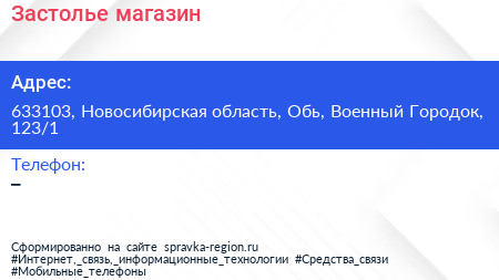 Застолье, магазин по адресу 633103, Новосибирская область, Обь, Военный Городок, 123/1 в дальнейшем Организация, размещена в следующих категориях: