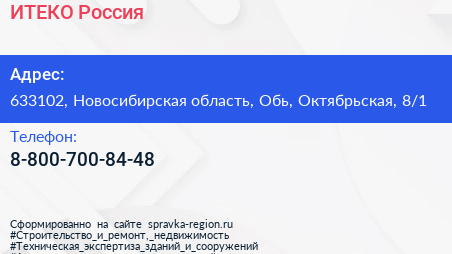 ИТЕКО Россия по адресу 633102, Новосибирская область, Обь, Октябрьская, 8/1 в дальнейшем Организация, размещена в следующих категориях:
