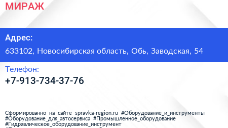 МИРАЖ по адресу 633102, Новосибирская область, Обь, Заводская, 54 в дальнейшем Организация, размещена в следующих категориях: