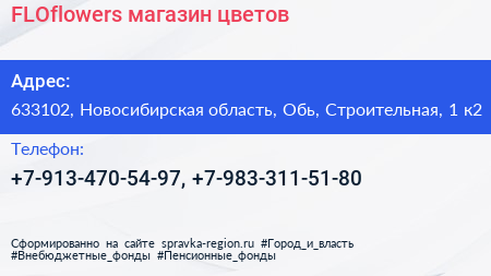 FLOflowers, магазин цветов по адресу 633102, Новосибирская область, Обь, Строительная, 1 к2 в дальнейшем Организация, размещена в следующих категориях: