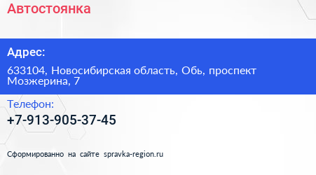 Автостоянка по адресу 633104, Новосибирская область, Обь, проспект Мозжерина, 7 в дальнейшем Организация, размещена в следующих категориях: