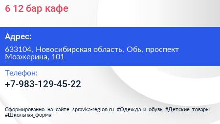 6-12, бар-кафе по адресу 633104, Новосибирская область, Обь, проспект Мозжерина, 101 в дальнейшем Организация, размещена в следующих категориях: