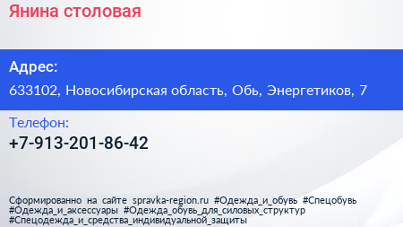 Янина, столовая по адресу 633102, Новосибирская область, Обь, Энергетиков, 7 в дальнейшем Организация, размещена в следующих категориях: