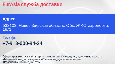 EurAsia, служба доставки по адресу 633103, Новосибирская область, Обь, ЖКО аэропорта, 18/1 в дальнейшем Организация, размещена в следующих категориях: