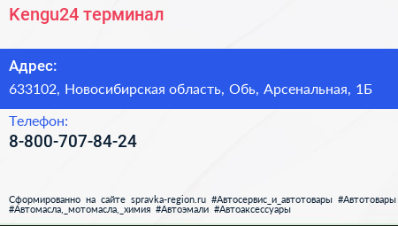 Kengu24, терминал по адресу 633102, Новосибирская область, Обь, Арсенальная, 1Б в дальнейшем Организация, размещена в следующих категориях: