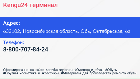 Kengu24, терминал по адресу 633102, Новосибирская область, Обь, Октябрьская, 6а в дальнейшем Организация, размещена в следующих категориях: