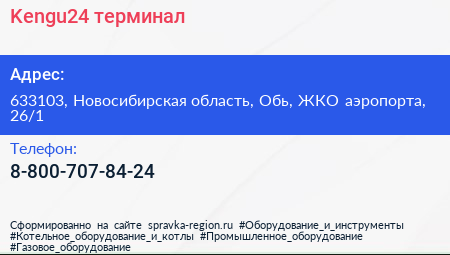 Kengu24, терминал по адресу 633103, Новосибирская область, Обь, ЖКО аэропорта, 26/1 в дальнейшем Организация, размещена в следующих категориях: