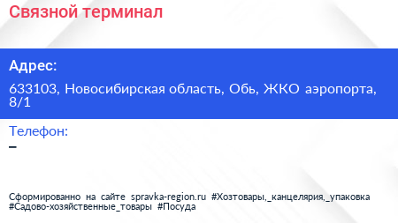Связной, терминал по адресу 633103, Новосибирская область, Обь, ЖКО аэропорта, 8/1 в дальнейшем Организация, размещена в следующих категориях: