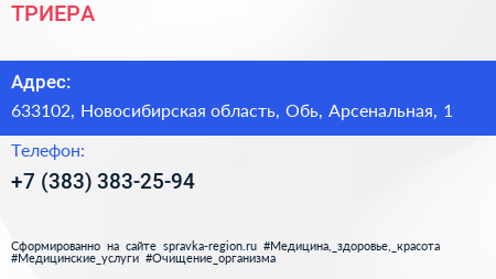ТРИЕРА по адресу 633102, Новосибирская область, Обь, Арсенальная, 1 в дальнейшем Организация, размещена в следующих категориях: