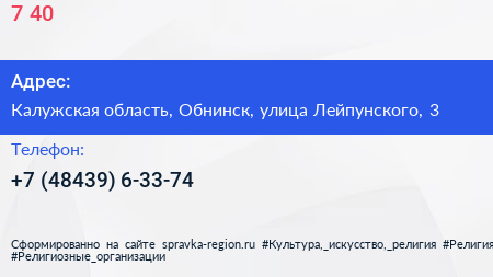 7:40 по адресу Калужская область, Обнинск, улица Лейпунского, 3 в дальнейшем Организация, размещена в следующих категориях: