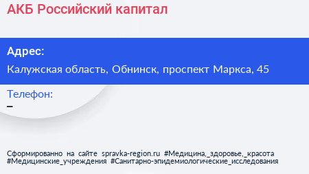 АКБ Российский капитал по адресу Калужская область, Обнинск, проспект Маркса, 45 в дальнейшем Организация, размещена в следующих категориях: