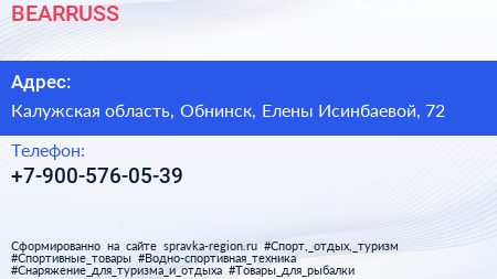 BEARRUSS по адресу Калужская область, Обнинск, Елены Исинбаевой, 72 в дальнейшем Организация, размещена в следующих категориях: