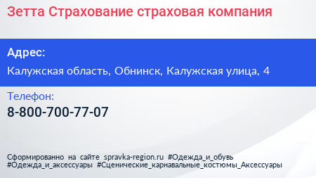 Зетта Страхование, страховая компания по адресу Калужская область, Обнинск, Калужская улица, 4 в дальнейшем Организация, размещена в следующих категориях: