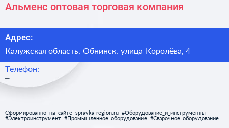 Альменс, оптовая торговая компания по адресу Калужская область, Обнинск, улица Королёва, 4 в дальнейшем Организация, размещена в следующих категориях: