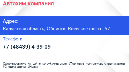 Автохим, компания по адресу Калужская область, Обнинск, Киевское шоссе, 57 в дальнейшем Организация, размещена в следующих категориях: