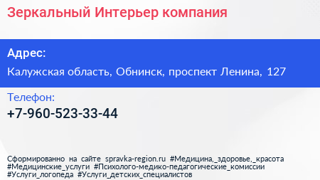 Зеркальный Интерьер, компания по адресу Калужская область, Обнинск, проспект Ленина, 127 в дальнейшем Организация, размещена в следующих категориях: