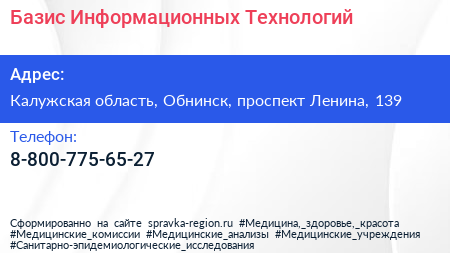 Базис Информационных Технологий по адресу Калужская область, Обнинск, проспект Ленина, 139 в дальнейшем Организация, размещена в следующих категориях: