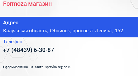 Formoza, магазин по адресу Калужская область, Обнинск, проспект Ленина, 152 в дальнейшем Организация, размещена в следующих категориях: