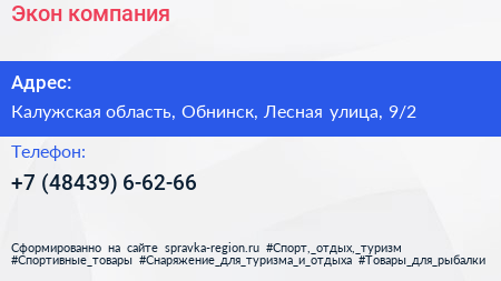 Экон, компания по адресу Калужская область, Обнинск, Лесная улица, 9/2 в дальнейшем Организация, размещена в следующих категориях: