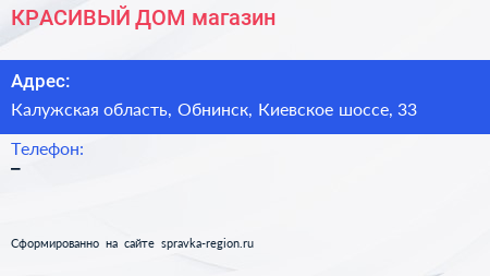 КРАСИВЫЙ ДОМ, магазин по адресу Калужская область, Обнинск, Киевское шоссе, 33 в дальнейшем Организация, размещена в следующих категориях: