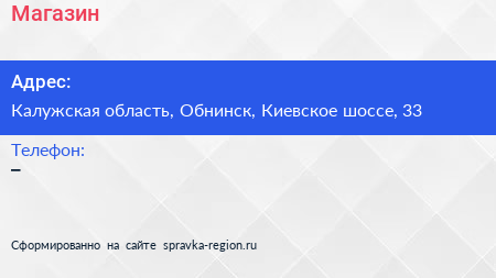 Адрес: Калужская область, Обнинск, Киевское шоссе, 33