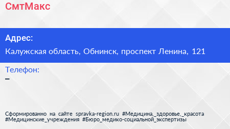 СмтМакс по адресу Калужская область, Обнинск, проспект Ленина, 121 в дальнейшем Организация, размещена в следующих категориях: