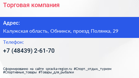 Торговая компания по адресу Калужская область, Обнинск, проезд Полянка, 29 в дальнейшем Организация, размещена в следующих категориях: