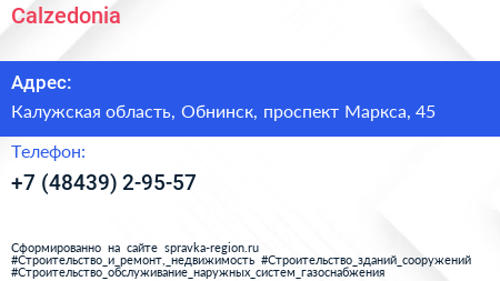 Calzedonia по адресу Калужская область, Обнинск, проспект Маркса, 45 в дальнейшем Организация, размещена в следующих категориях: