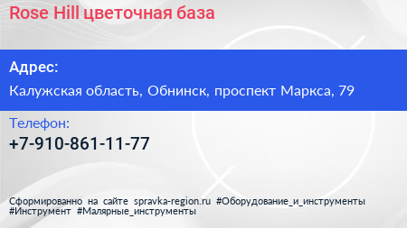 Rose Hill, цветочная база по адресу Калужская область, Обнинск, проспект Маркса, 79 в дальнейшем Организация, размещена в следующих категориях: