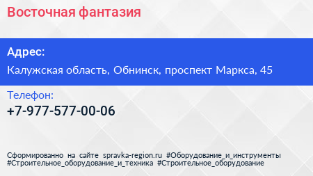 Восточная фантазия по адресу Калужская область, Обнинск, проспект Маркса, 45 в дальнейшем Организация, размещена в следующих категориях: