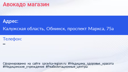 Авокадо, магазин по адресу Калужская область, Обнинск, проспект Маркса, 75а в дальнейшем Организация, размещена в следующих категориях: