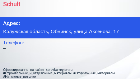Schult по адресу Калужская область, Обнинск, улица Аксёнова, 17 в дальнейшем Организация, размещена в следующих категориях: