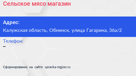 Сельское мясо, магазин по адресу Калужская область, Обнинск, улица Гагарина, 36а/2 в дальнейшем Организация, размещена в следующих категориях: