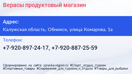 Верасы, продуктовый магазин по адресу Калужская область, Обнинск, улица Комарова, 1а в дальнейшем Организация, размещена в следующих категориях: