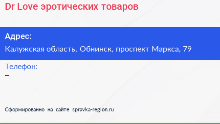 Dr.Love, эротических товаров по адресу Калужская область, Обнинск, проспект Маркса, 79 в дальнейшем Организация, размещена в следующих категориях: